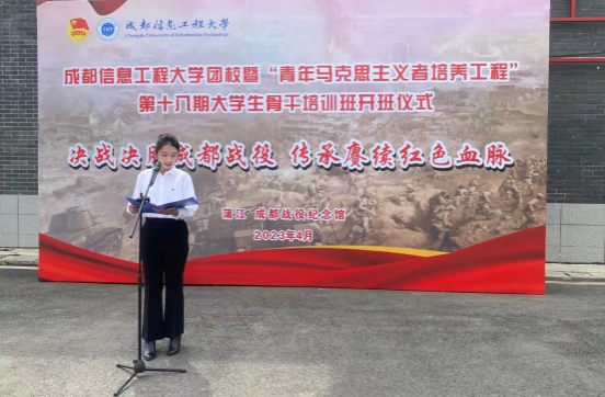 开班仪式后,蒲江县委党校凌玲老师为我校“青马工程”第十八期大学生骨干班全体学员带来第一讲《决战决胜成都战役·赓续传承红色血脉》,并在讲解员的带领下参观了成都战役纪念馆。实践教育活动的最后,全体学员来到在成都战役烈士陵园举行祭英烈仪式,为长眠于此的110位革命烈士献上了鲜花,缅怀革命先烈的英勇事迹和无私奉献精神。