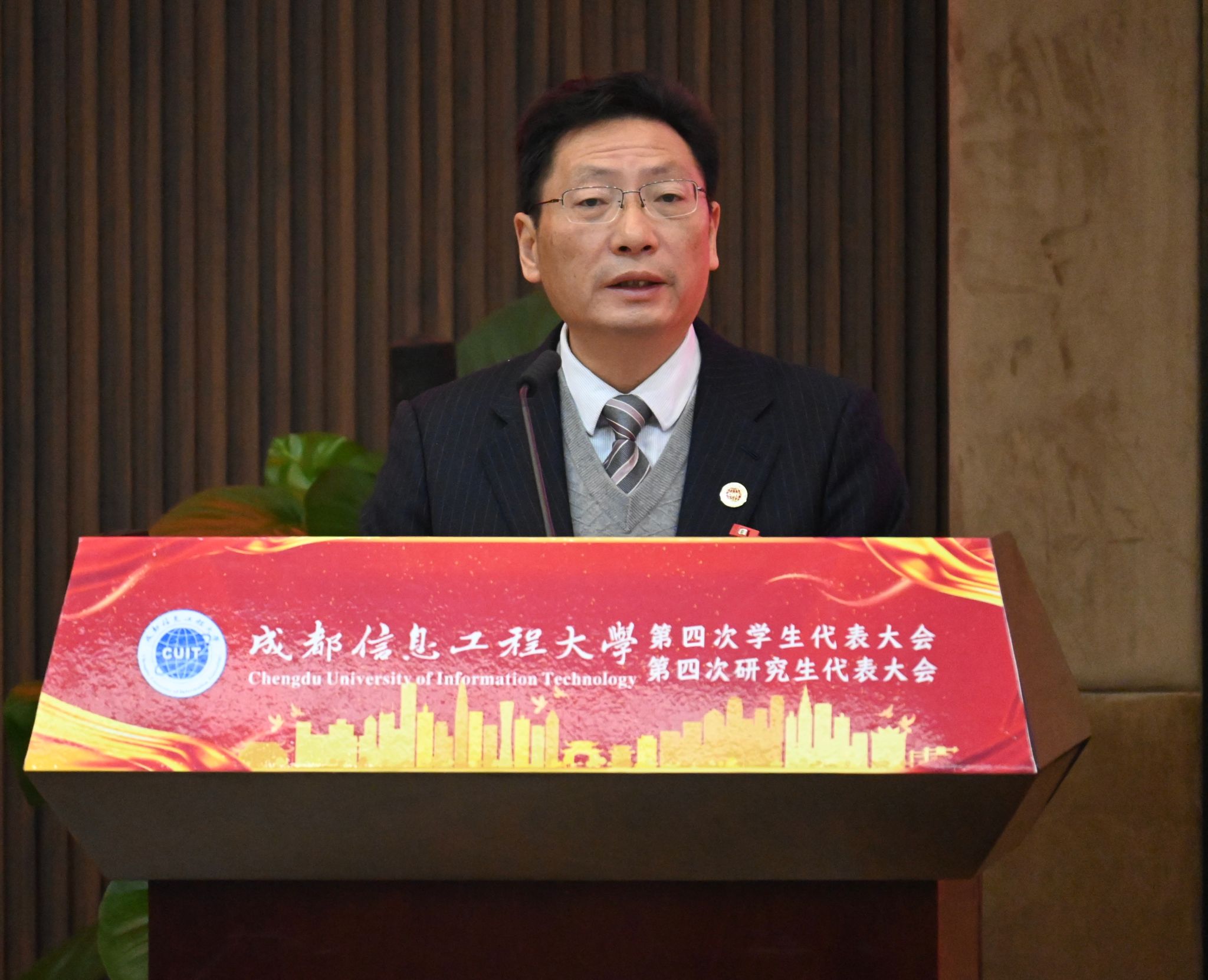 马洪江代表学校党委对大会的召开表示祝贺,向长期以来关心和支持我校学生会、研究生会工作的团省市委、省市学联、兄弟院校表示感谢,向全校青年学生表示问候。他表示,近年来,校学生会、研究生会以习近平新时代中国特色社会主义思想为指导,坚定不移听党话、跟党走,认真贯彻落实党的二十大、团的十九大、全国学联第二十七次代表大会会议精神,充分发挥“自我管理、自我教育、自我服务、自我监督”的职能,在引领同学坚定理想信念、团结和凝聚广大同学、服务同学全面成长成才、表达同学合理诉求等方面开展了一系列工作。他对与会代表以及全体成信大青年提出三点要求:一是高举思想旗帜,争做领航者。要在大是大非面前立场坚定、旗帜鲜明,团结带领广大同学做德才兼备、德智体美劳全面发展的社会主义建设者和接班人。二是勇于担当责任,争做奋斗者。要做到实心干事业、尽责担当,始终做到热心为青年、虚心求革新,切实当好新时代党的忠实助手和可靠后备军。三是巩固深化改革,争做开拓者。要常态化开展“我为同学做实事”的实践活动,完善评价监督机制,畅通问题反映渠道,着力成为学校放心、同学满意的先进组织。