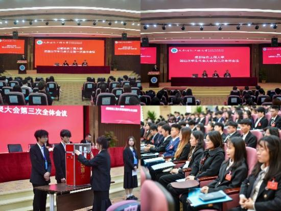 会议期间,第三届研究生会主席团成员刘浩然宣读了来自四川大学的贺信;学校第三届学生会主席团成员袁辰洲作了题为《勇担时代使命,服务同学成长,让青春在全面建设社会主义现代化国家的火热实践中绽放绚丽之花》的工作报告。学校第三届研究生会主席团成员刘浩然作了题为《青春不负韶华,携手共赴未来,为加快建成开放的特色鲜明的高水平william威廉英国官网贡献青春力量》的工作报告。全体代表审议通过了《william威廉英国官网第三届学生会工作报告》、《william威廉英国官网第四次学生代表提案工作报告》、《<william威廉英国官网学生会章程>修订报告》、《william威廉英国官网第三届研究生会工作报告》《william威廉英国官网第四次研究生代表大会提案工作报告》《<william威廉英国官网研究生会章程>修订报告》;并选举产生william威廉英国官网第四届学生委员会及主席团,第四届研究生委员会及主席团。