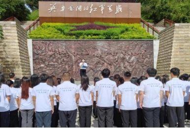 开班仪式后,全体人员在烈士纪念碑下进行了敬献花篮、默哀等仪式。随后,在讲解员的带领下观看了百丈关战役视频,参观了百丈关战役烈士纪念馆。