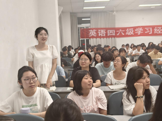 2024年4月28日晚19:30,由外国语学院和网络空间安全学院联合举办的英语四、六级学习经验交流会在H1108教室成功举办。此次分享会活动旨在帮助同学们提高大家英语学习能力,帮助大家对四六级的复习有更好的认识。外国语学院团委书记达苗老师、网络空间安全学院团委书记夏焜老师及各学院大一大二同学参加本次活动。外国语学院的陈垣敏和匡玉同学担任此次活动主持人。