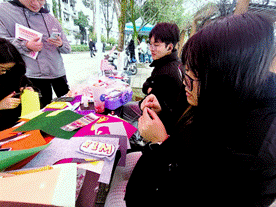 为扩大活动影响力,管理学院团委学生会活动部在学生宿舍六栋对面设立了为期三天的活动宣传点,便利的场地安排吸引众多同学课后踊跃参与,活动现场气氛温馨热烈。在手工制作区,同学们专注创作,欢声笑语不断,充分展现了女性的自信与创造力。一份份精心准备的暖心礼物,不仅传递着节日的真挚祝福,驱散了学习工作的疲惫,更让女性师生感受到校园的尊重与关爱,为节日增添了浓浓温情。